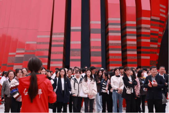 在“红飘带”圣火广场,工作人员简单介绍了场馆设计理念以及场馆内涉及的演绎内容。全体人员正式进入场馆内进行参观体验。整个场馆由全域行浸数字演艺《红飘带·伟大征程》和飞行演艺《红飘带·多彩飞越》两大部分组成,通过虚拟现实、增强现实、全息投影等高科技手段,生动再现了长征过程中的重要历史事件和场景,让观众置身一幕幕历史场景中,沉浸式体验了“血战湘江”“遵义会议”“四渡赤水”“巧渡金沙江”“爬雪山过草地”等经典红色文化。
