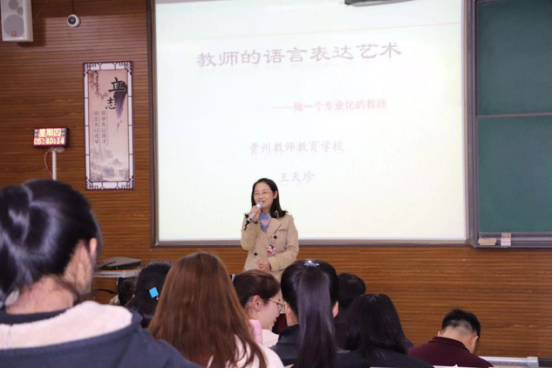 本次讲座,由贵州教师教育公司、国家级普通话测试员、贵州省普通话水平测试视导员王天珍教师主讲,参加讲座的师范生涉及全校10个公司14个专业共276人。王老师从自身经历、中小学对教师普通话的要求、普通话等级测试及教师口语表达的基本条件等方面给同学们作了细致的讲解。