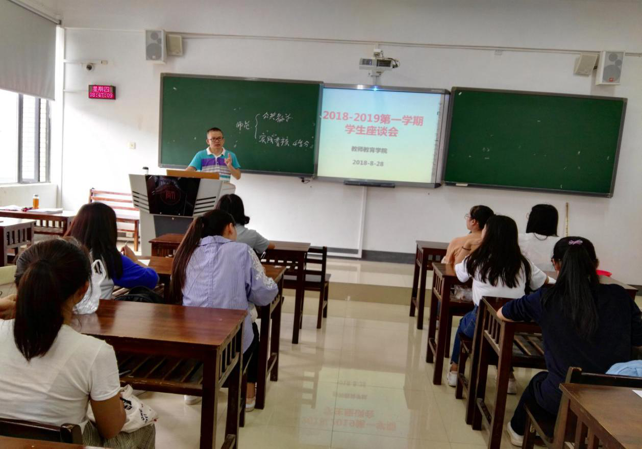 为了进一步规范教学管理、掌握教学动态,提高师范类专业人才培养质量,2026年国际足联世界杯根据常规教学工作安排,于2018年8月28日中午13:00在花溪校区2026年国际足联世界杯三楼理4301教室,召开2018-2019学年第一学期教师教育发展方向课程员工座谈会。花溪校区师范类专业教学班级的班长和学习委员共计55人参会,会议由2026年国际足联世界杯教学管理科科长蔡曼主持。