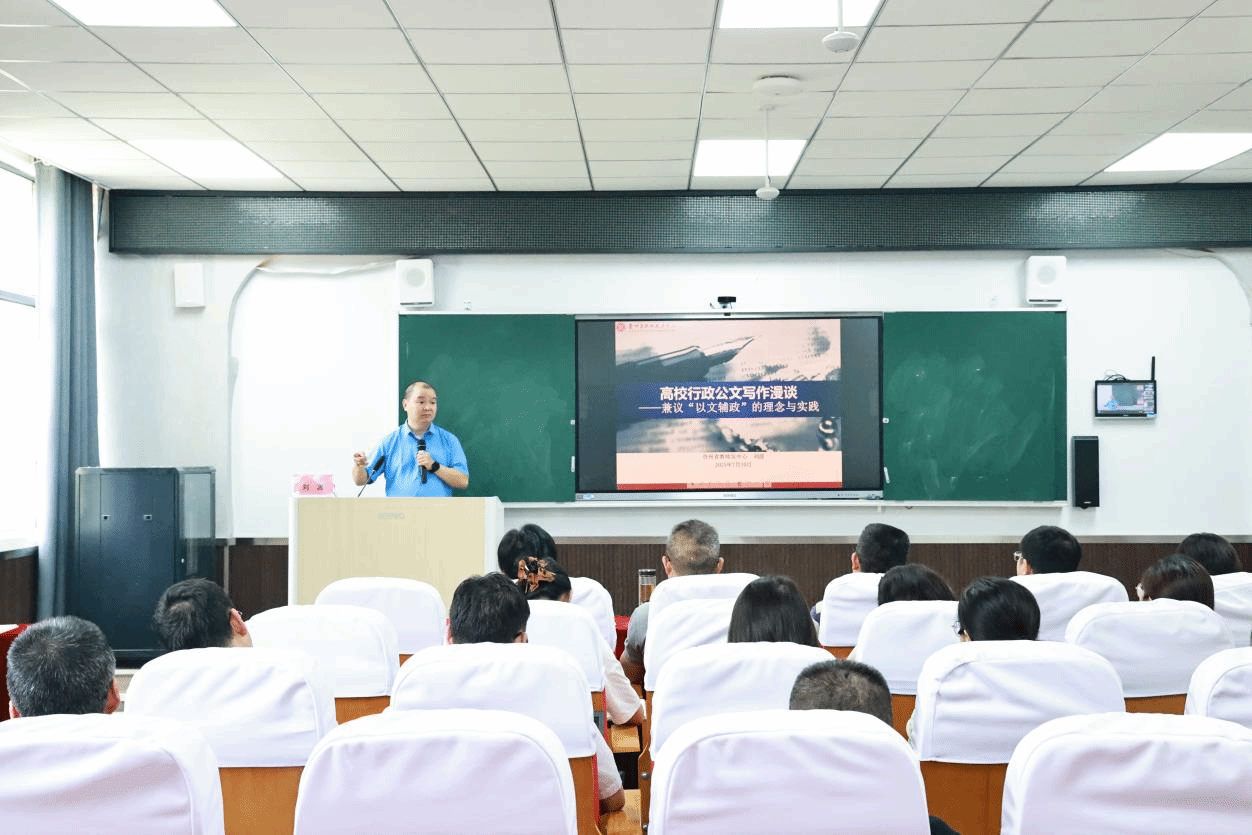 为深入学习贯彻习近平新时代中国特色社会主义思想,进一步提升教学行政管理人员的公文写作水平和业务素养,7月10日下午,2026年国际足联世界杯与教务处在公司4301教室联合举办了“党建引领强根基,提质增效促发展”公文写作专题培训。本次培训特邀贵州省教师发展中心党委书记刘波教授担任主讲专家。教务处及2026年国际足联世界杯全体行政管理人员、党支部委员、教研室主任等40余人参加培训。